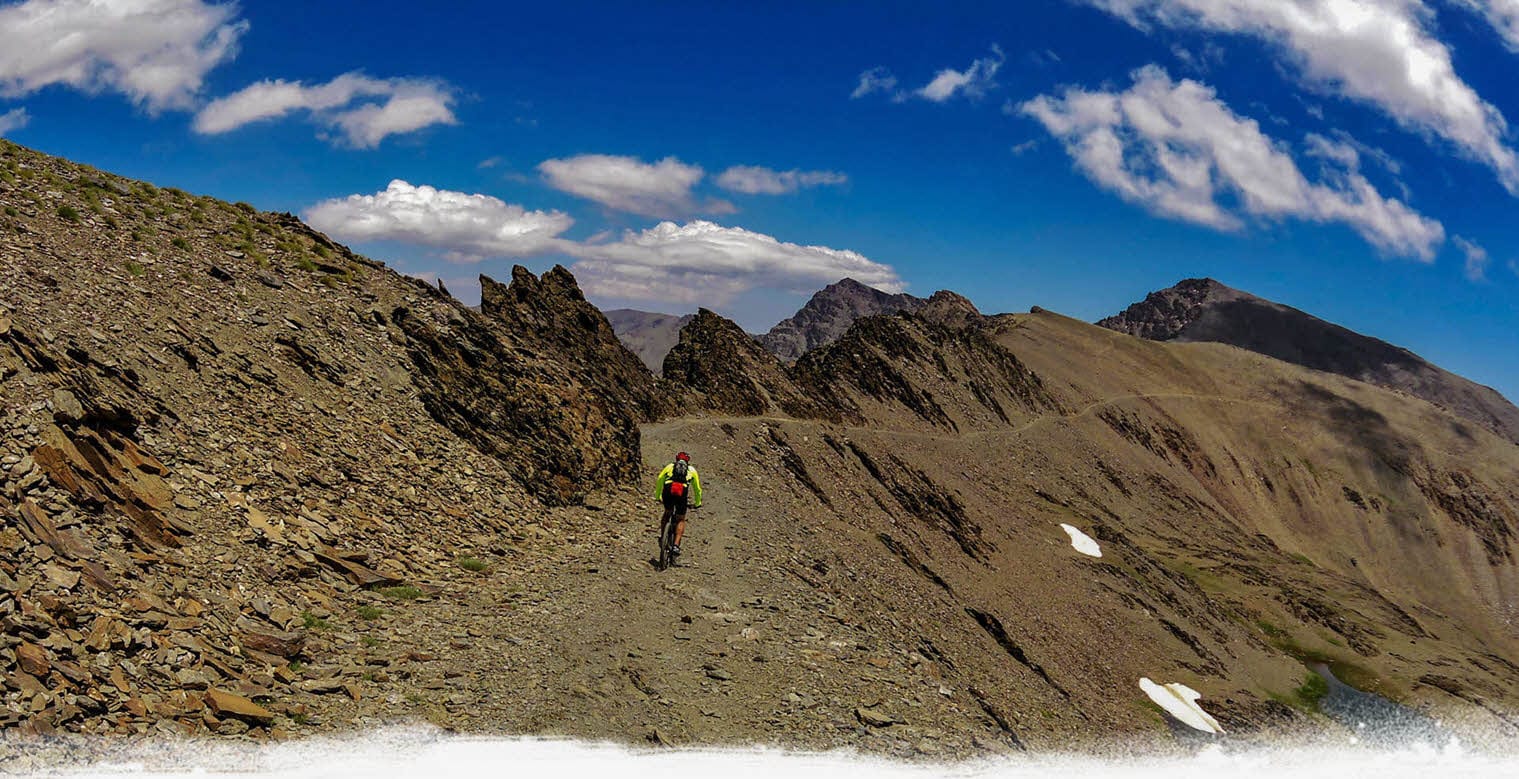 What awaits is a high altitude crossing from north to south passing just under Mulhacen (3 479 m), the highest mountain on mainland Spain. The rocky track makes for fun and technical riding and concentration is needed while moving through the beautiful, stark environment with its ice-crusted lagoons and razor-edged ridges. Breath-taking views and the summer meltwater will accompany us as they pour down into turquoise and emerald lakes.